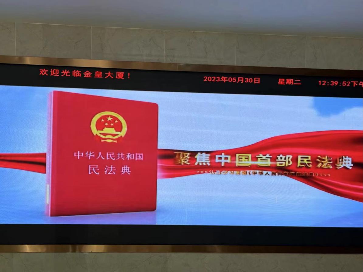 控股公司利用公司網站發布解讀民法典專題文章,利用LED電子顯示屏滾動播放宣傳海報及宣傳片;發放民法典宣傳手冊,對網絡虛擬財產、見義勇為、居住權、高空拋物等進行案例和法條普法。