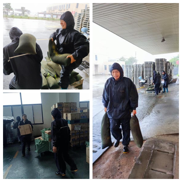 (圖為晶秀輕化黨支部帶領突擊隊準備防御第5號臺風“杜蘇芮”物資等)
