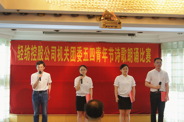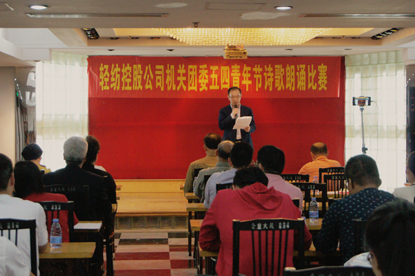 為深入學(xué)習(xí)貫徹習(xí)近平新時(shí)代中國特色社會(huì)主義思想和黨的十九大精神,弘揚(yáng)“五四”精神,展示福建輕紡團(tuán)員青年在“再上新臺(tái)階、建設(shè)新福建”中的使命擔(dān)當(dāng)和精神風(fēng)貌,5月4日,由福建輕紡機(jī)關(guān)團(tuán)委主辦的“五四“青年節(jié)詩歌朗誦比賽在公司四樓會(huì)議室舉行,公司黨組副書記、總經(jīng)理黃文定,黨組成員、副總經(jīng)理陳國樑、本部各部室負(fù)責(zé)人、各權(quán)屬企業(yè)黨組織負(fù)責(zé)人到現(xiàn)場觀摩、指導(dǎo)。