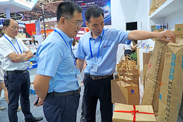 青山紙業公司經過60多年的發展,已成為集制漿、造紙、發電供熱、堿回收、醫藥、光電子、原料林基地開發于一體的國有大型上市企業。擁有12家全資或控股子公司,是全國1000家重點發展企業、全國紙袋紙、溶解漿重點生產企業,福建省“十二五”重點培育的50家行業領軍企業,先后通過了ISO9001質量管理體系、ISO14001環境管理體系及ISO22000食品安全管理體系國際標準認證。近年來,公司通過及時轉型升級、技術創新、新舊動能轉換、產學研用融合、新品研發推廣,提升企業核心競爭力,推動高質量發展落實趕超。此次青山公司重點展出了白色伸性紙、本色伸性紙、竹漿復合原紙、竹漿漿本色抽紙以及下游系列包裝袋。其中,創新研發成果竹漿復合原紙是在原有全木漿復合原紙基礎上,以自產竹漿為原料,經工藝創新和流程優化成功抄造出竹漿復合原紙新產品,其產品具有透氣高、復合性能好、成紙勻度佳、紙頁外觀平整等特點,其各項指標優于行業標準,得到客戶認可。