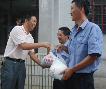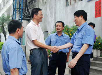 7月11日下午,沙縣縣委常委副書記、工會主席余榮生,沙縣工會常務副主席黃阿勝,青州鎮鎮長朱起憲等一行在公司領導陳文水、張發柳的陪同下,代表沙縣縣委、縣政府慰問青山紙業高溫下工作的生產一線職工,并給他們送來了防暑降溫慰問品。